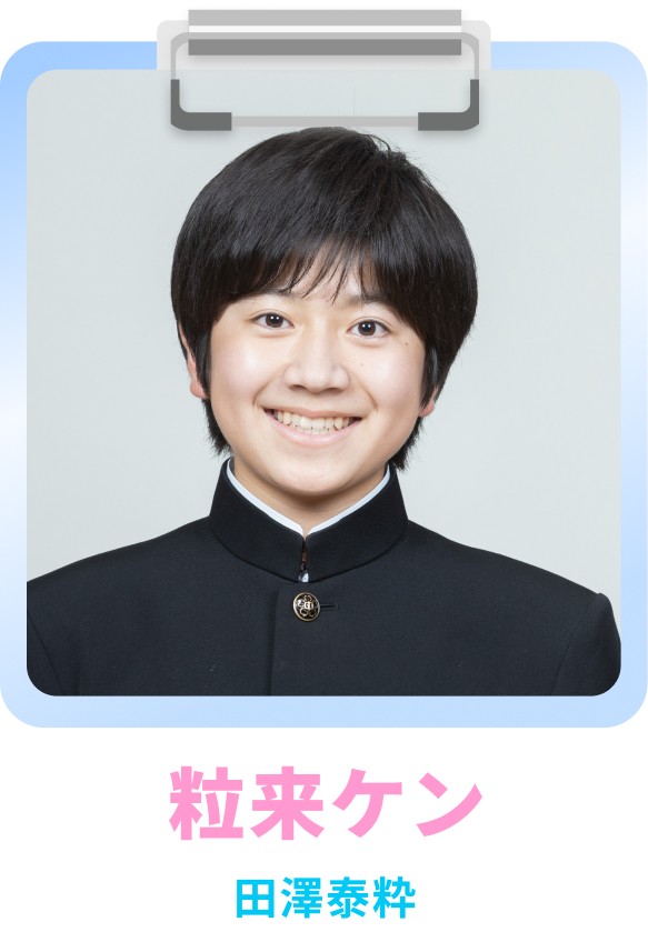おいしい給食ファンの皆様。はじめまして!粒来ケン役の田澤泰粋です。「おいしい給食 season3」に出演させて頂いてとても嬉しいです。綾部監督や市原さんをはじめ、スタッフの皆さんが優しく暖かい現場を作って下さり、撮影期間中は毎日とても楽しかったです。給食は毎回全ておいしくて食べ過ぎて太っちゃいました!作品を楽しみにして下さっている皆様に楽しんで頂けるように一生懸命頑張りました。僕も完成した作品が楽しみです。「おいしい給食 season3」をお楽しみに!