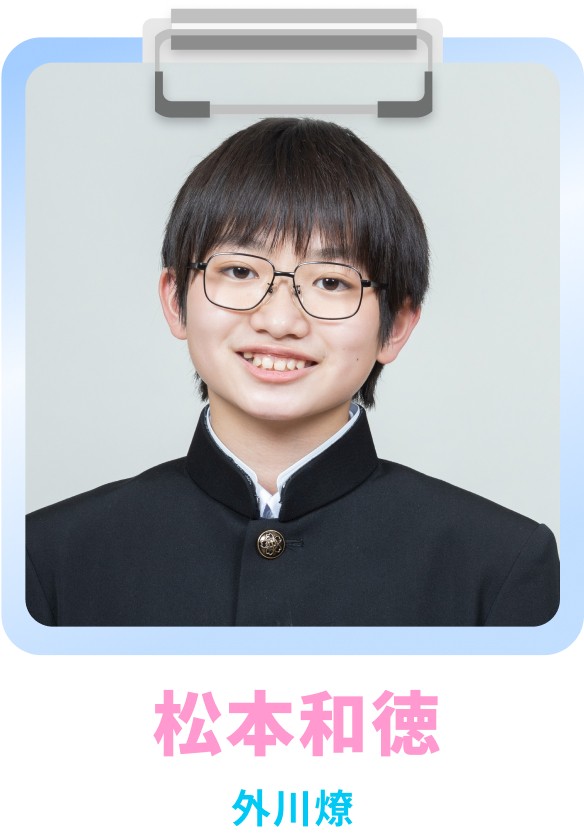普段と給食時のギャップがすごく面白い先生です。なので給食時のシーンの撮影のときが1番楽しかったです。演じられているときの、迫力のある先生に圧倒されたのをよく覚えています。2年生でも先生が担任だといいなぁ笑