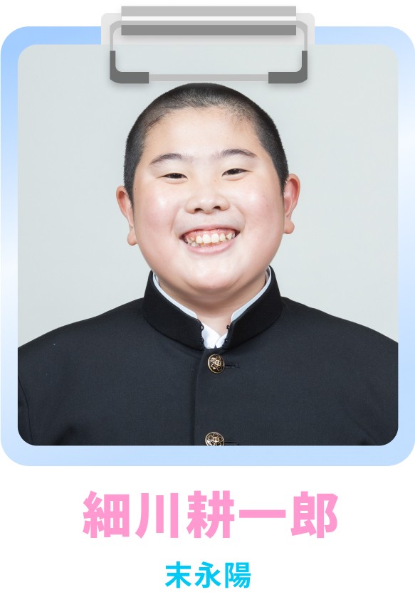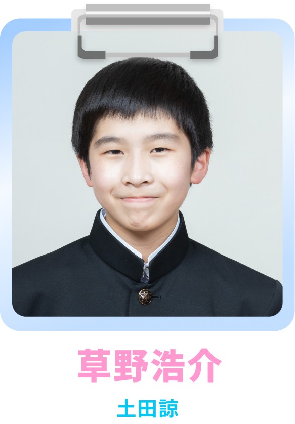 僕は初めての連続ドラマ出演で緊張しましたが、一所懸命頑張りました!市原さんは、撮影中も休憩中も僕らに演技の事、役に対する姿勢、体の鍛え方など、色々な事を教えてくださいました。生徒全員、全力で取り組んだ素晴らしい作品です。ぜひ、大笑いしながら観てください!
