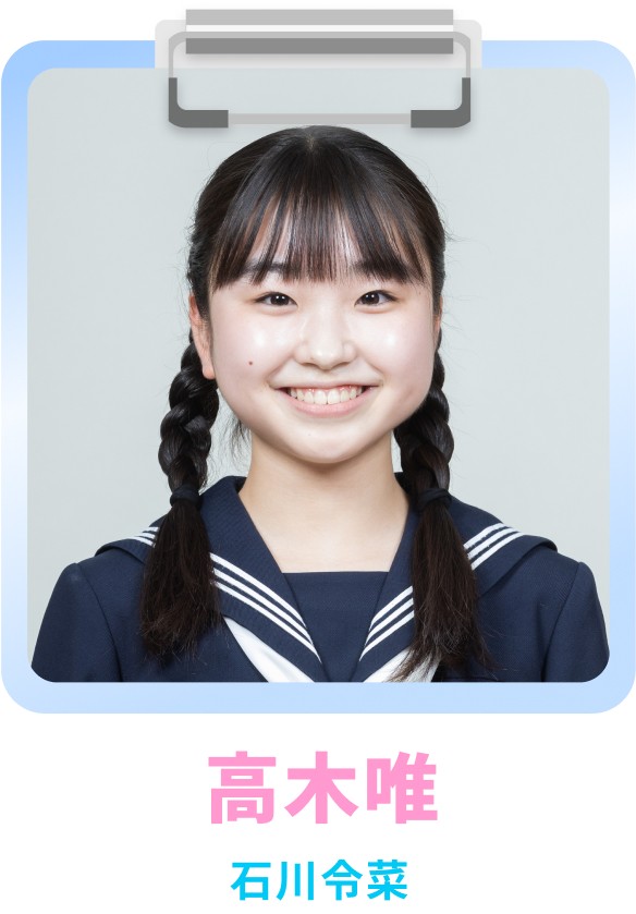 初めてのドラマ撮影で緊張しましたが、精一杯頑張りました。忍川中学校1年1組はクラスの仲がとても良くて、本当の学校のようで撮影期間は毎日がとても楽しかったです。函館ならではのおいしい給食メニューも見どころです!忍川中学校の校歌も素敵な歌詞と曲調なのでぜひ覚えて歌ってもらえたら嬉しいです。みんなで団結して作り上げた素敵な作品なので、家族みんなで観てください!