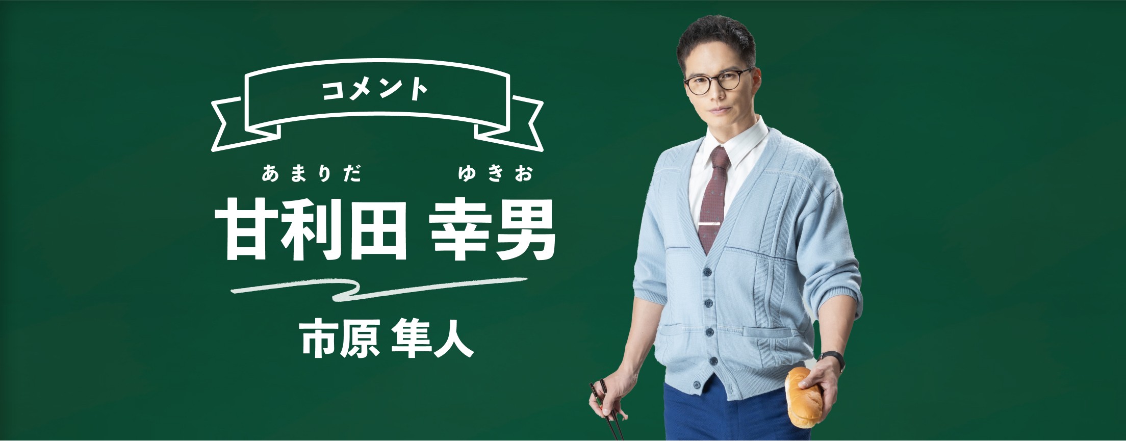 もう、奇跡です。何もない所から始まったオリジナル作品を、こんなにも多くの皆様に愛していただきこれ以上ない感謝を申し上げます。1988年の函館を舞台に、給食に翻弄され滑稽ながらも人間臭く懸命に生きる甘利田先生の姿から、時代に寄りかかり忘れかけている大切なものをお届けいたします。お子様から、人生のキャリアを積んだ方まで全てのお客様に向けた骨太のエンターテインメントを掲げ、連日、愛して止まないオールスタッフ&オールキャストと共に体力の限界を超える撮影に励んでいます。走り続ければたどり着く場所があると信じ、今作品を好いて下さる皆様へ精一杯の恩返しをするべく、恐ろしい程に作品に吸い込まれ、より一層この作品でしか表現できない振り切った自分と向き合っています。10月の放送開始をお楽しみ下さい。